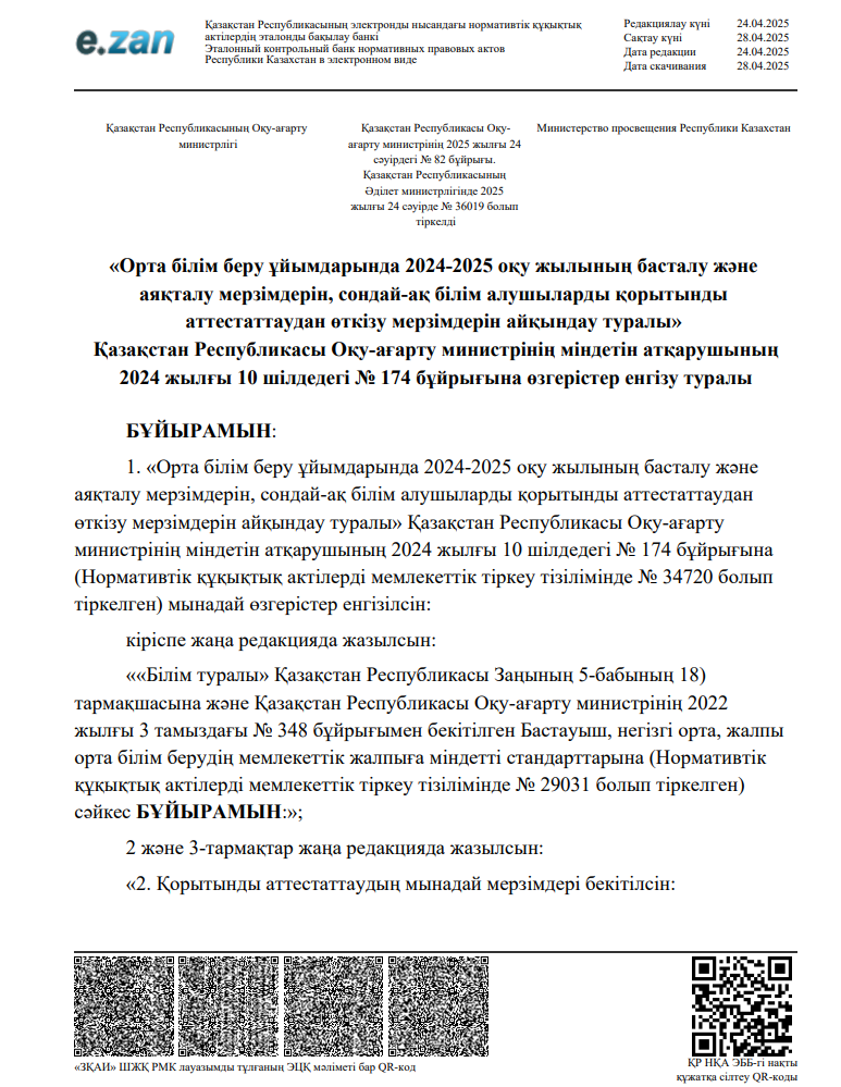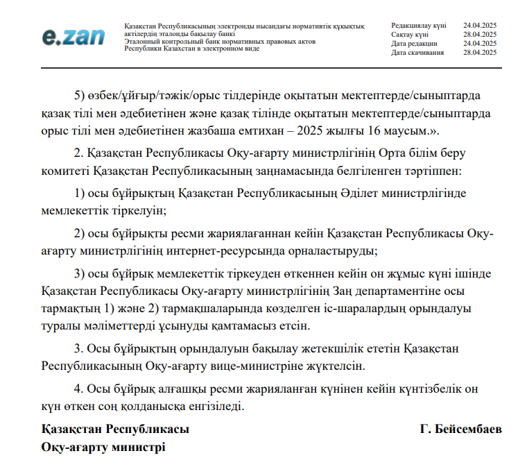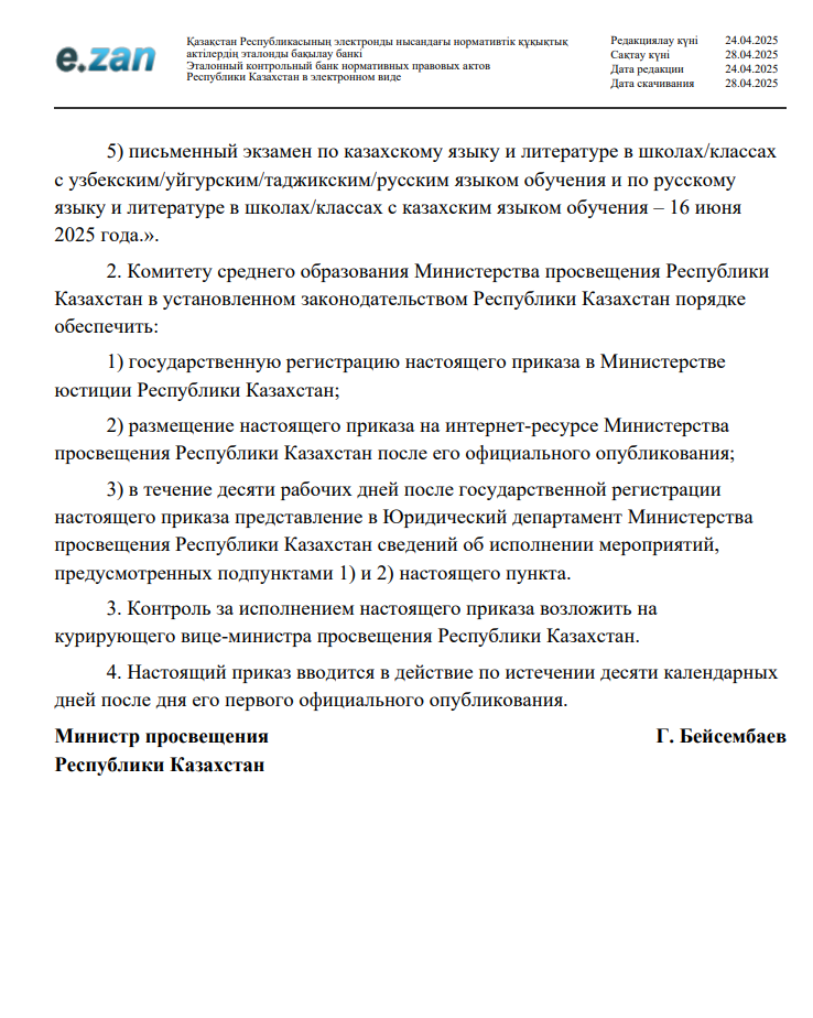 Соңғы қоңырау және емтихан туралы/ Информация о последнем звонке и экзаменах