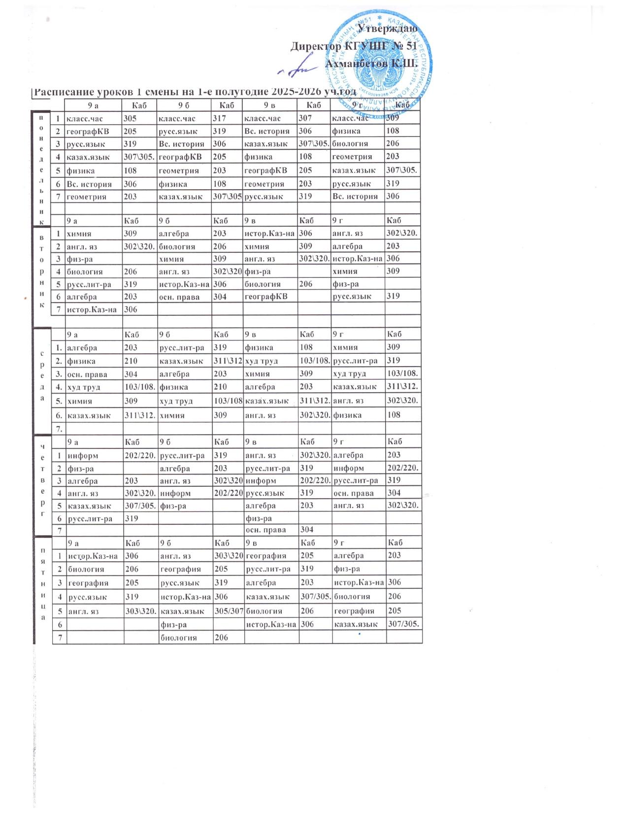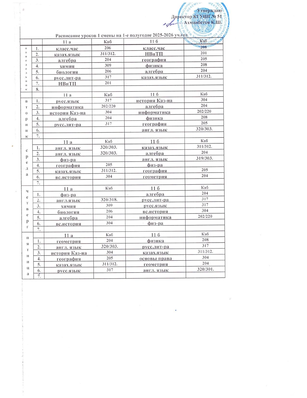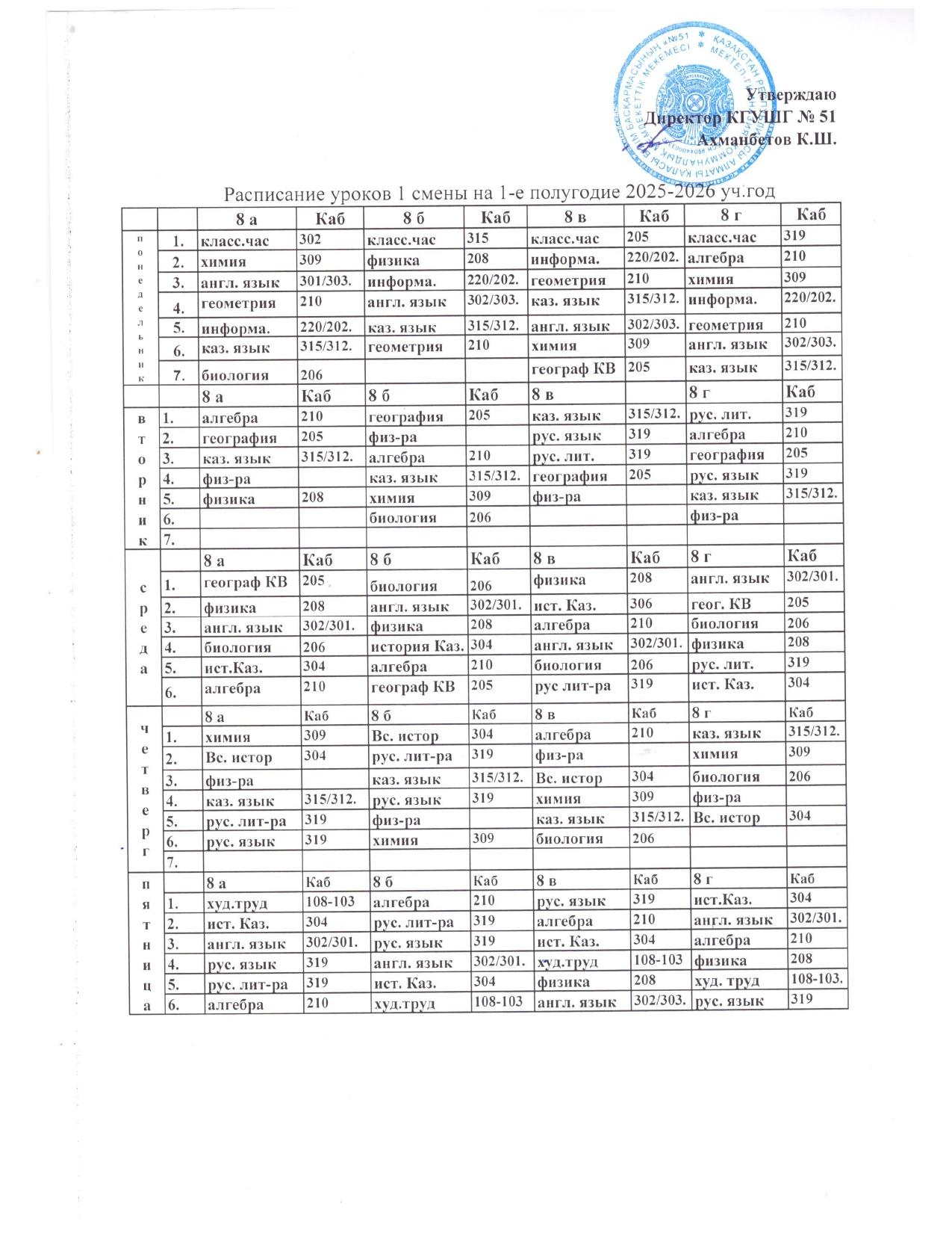 08 қыркүйек 2025 0 1 2 3 4 5 2025-2026 оқу жылына арналған сабақ кестесі 1 жартыжылдық / Расписание уроков на 2025-2026 учебный год 1 полугодие