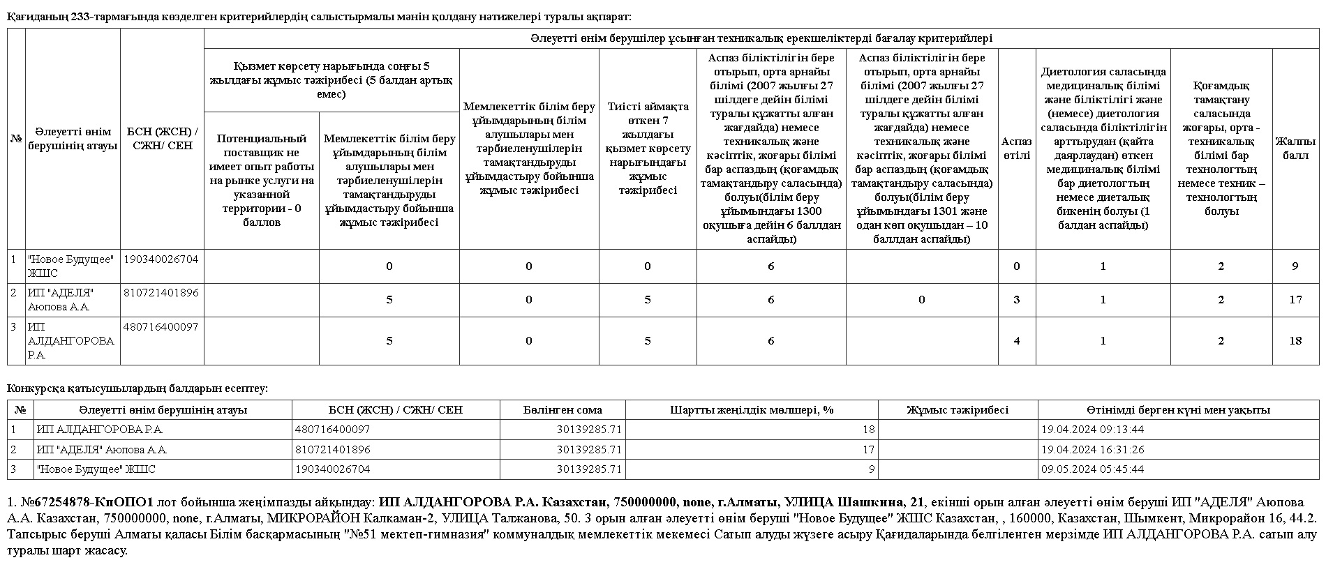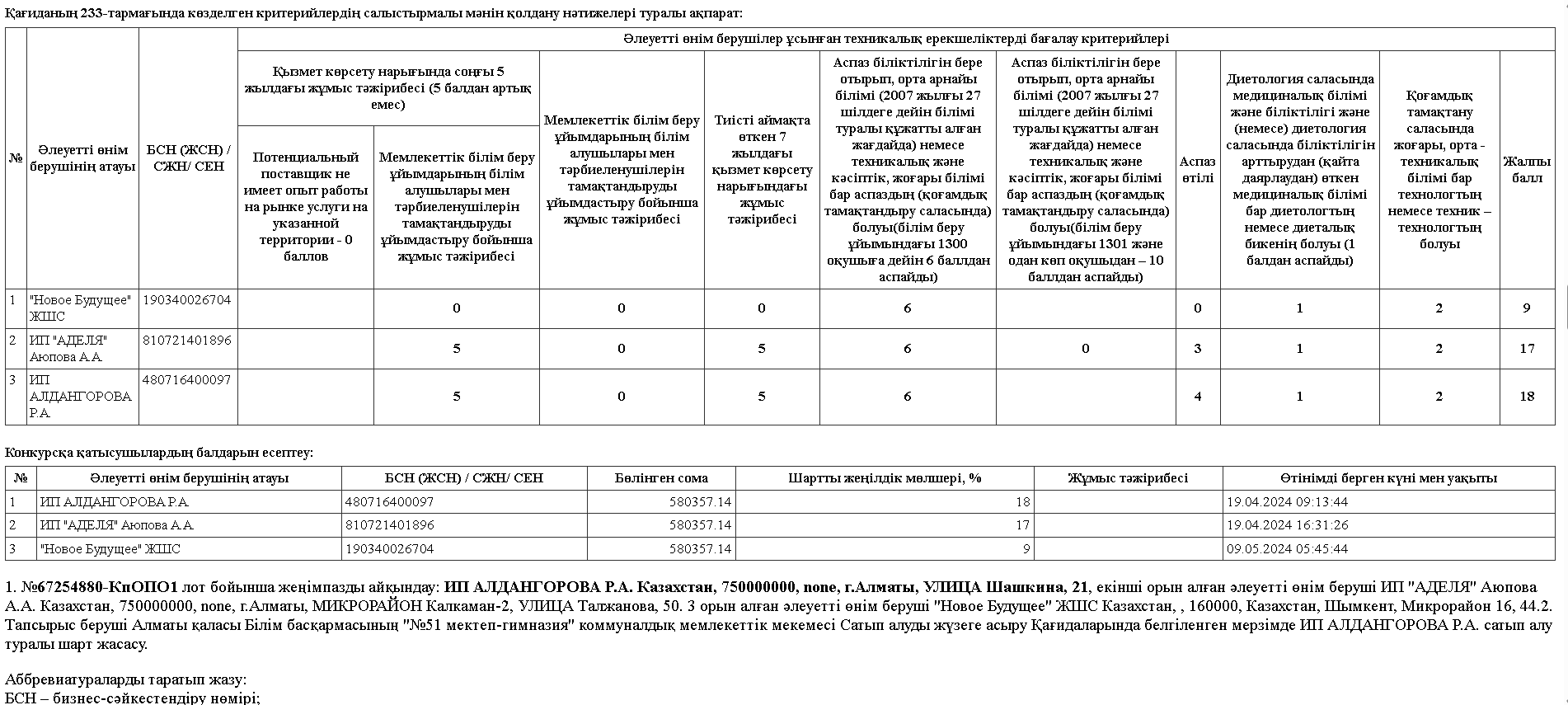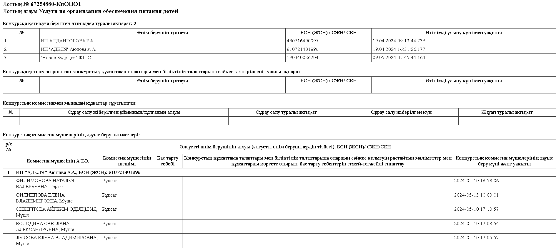 23 қаңтар 2025 0 1 2 3 4 5 Тамақтану бойынша конкурс ХАТТАМАСЫ / Протокола конкурса по питанию Протокол