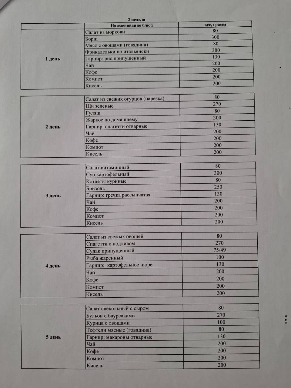 Перспективное двухнедельное меню