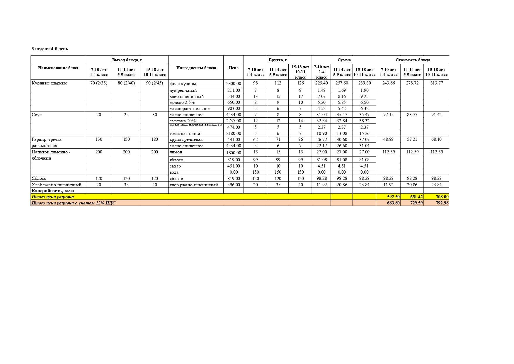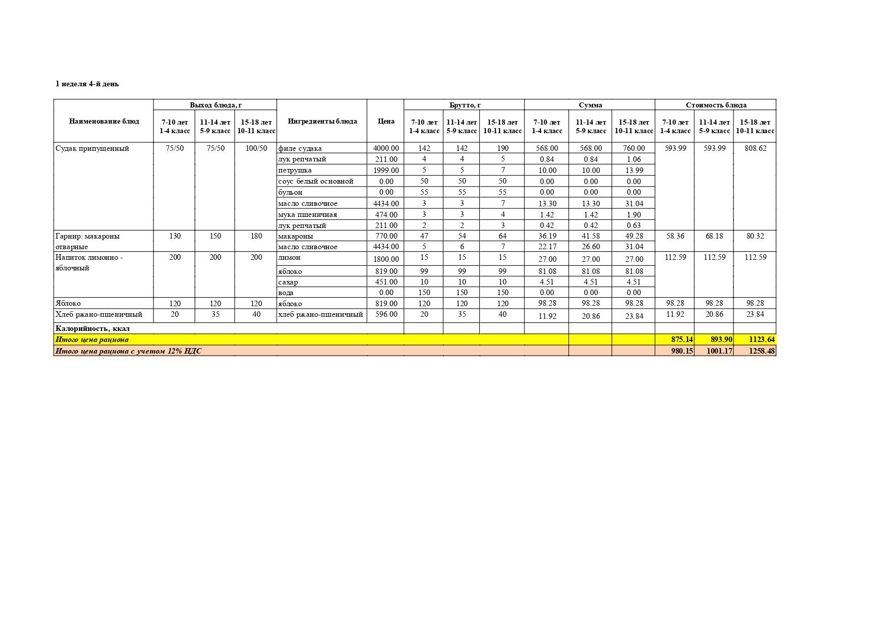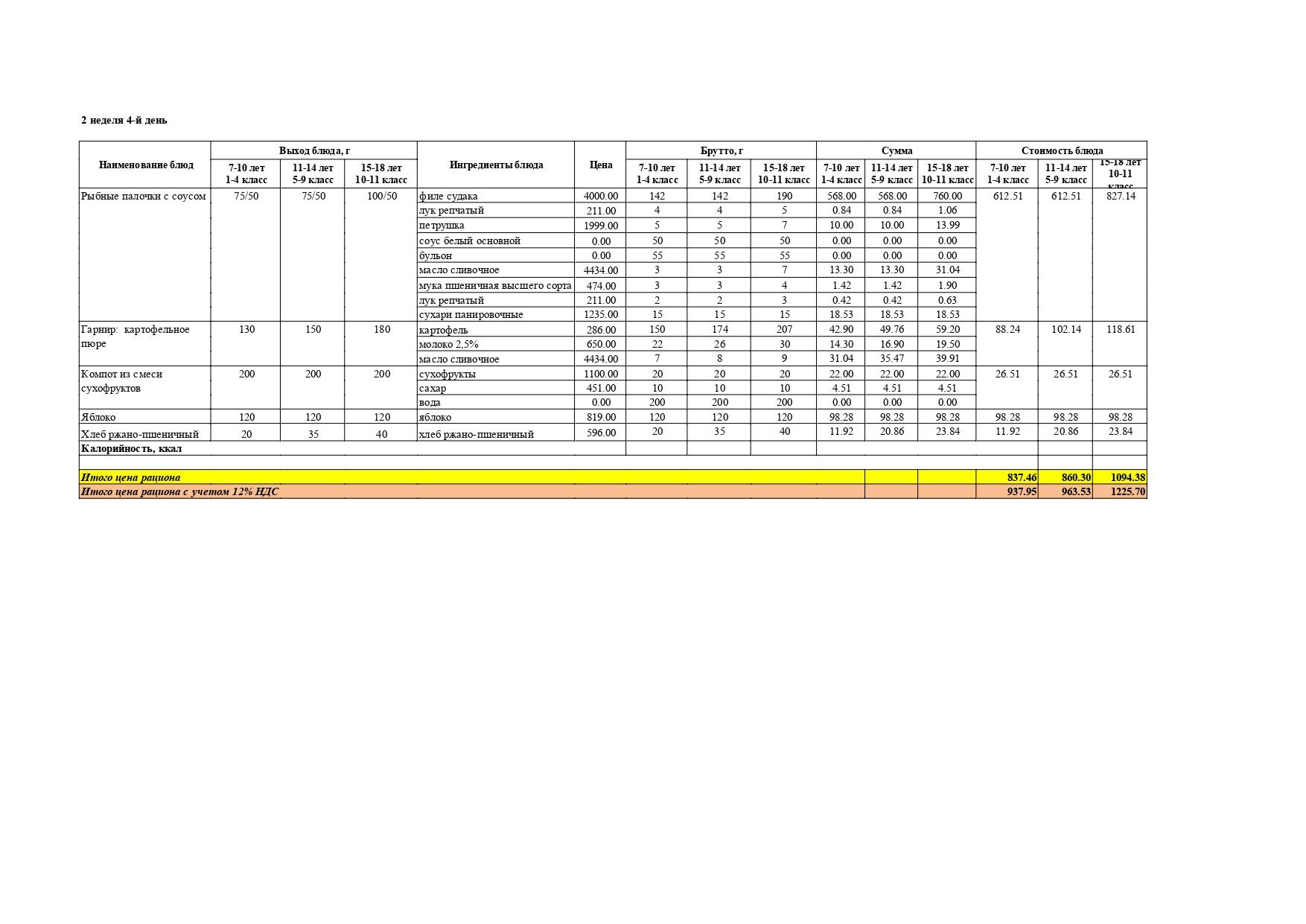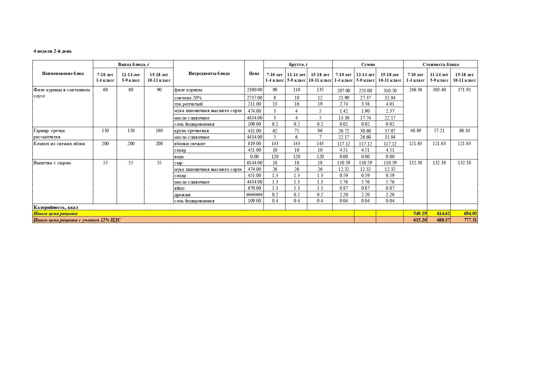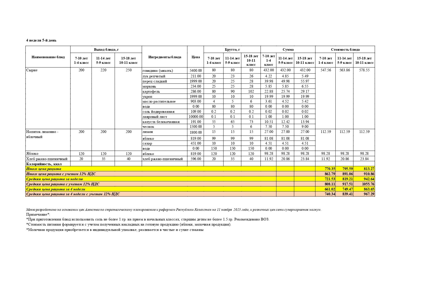 Перспективалы 4 апталық мәзір / Перспективное 4-х недельное меню
