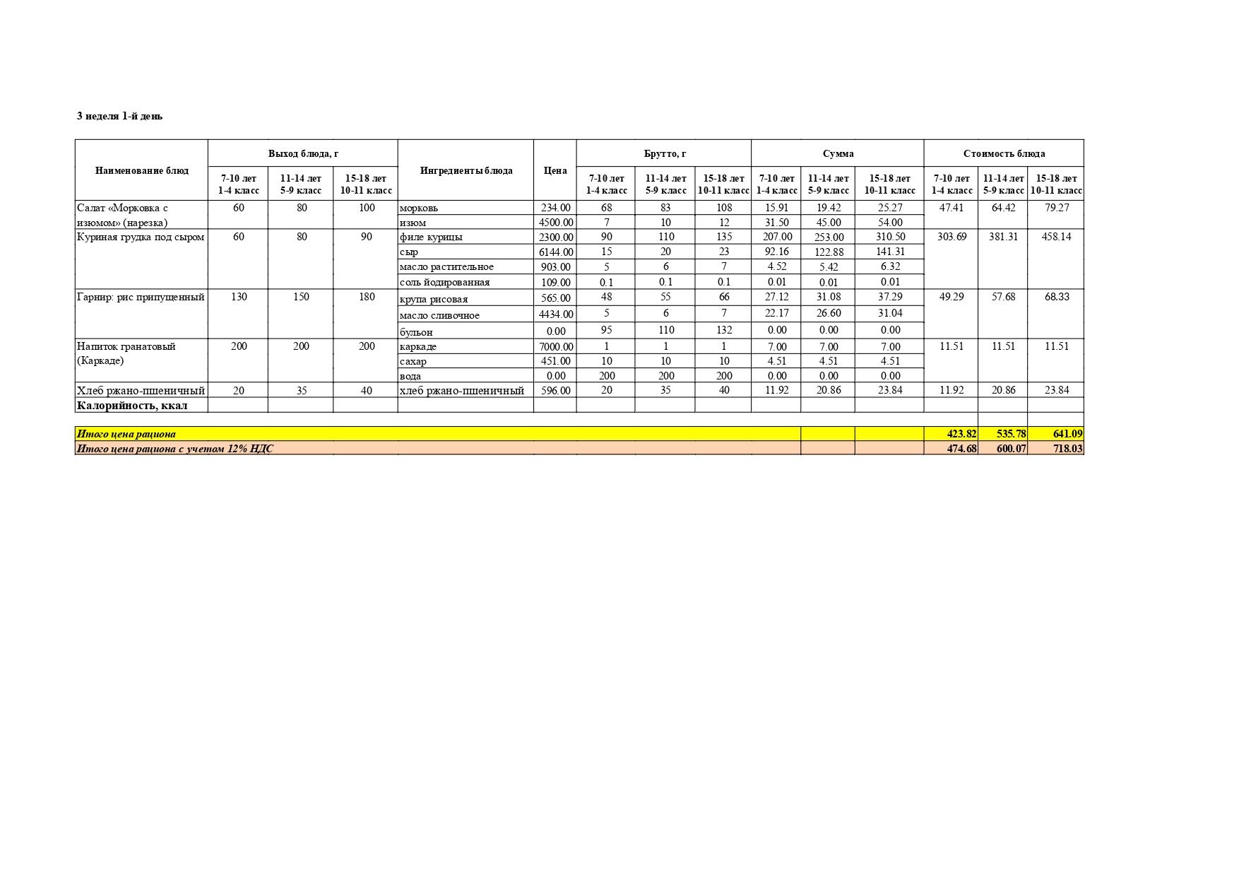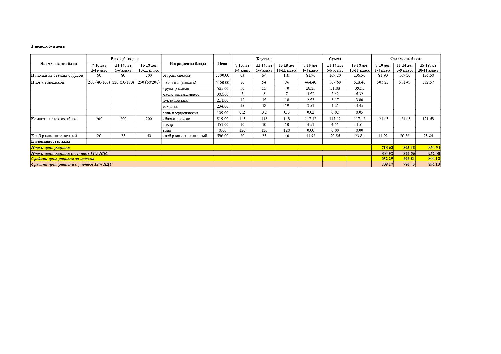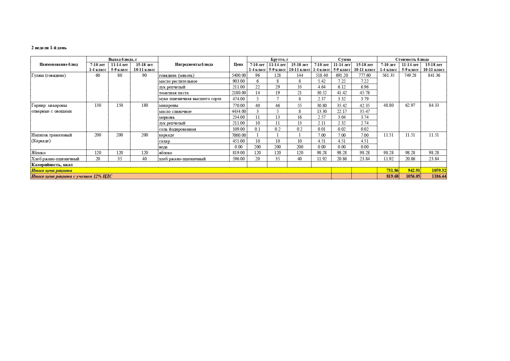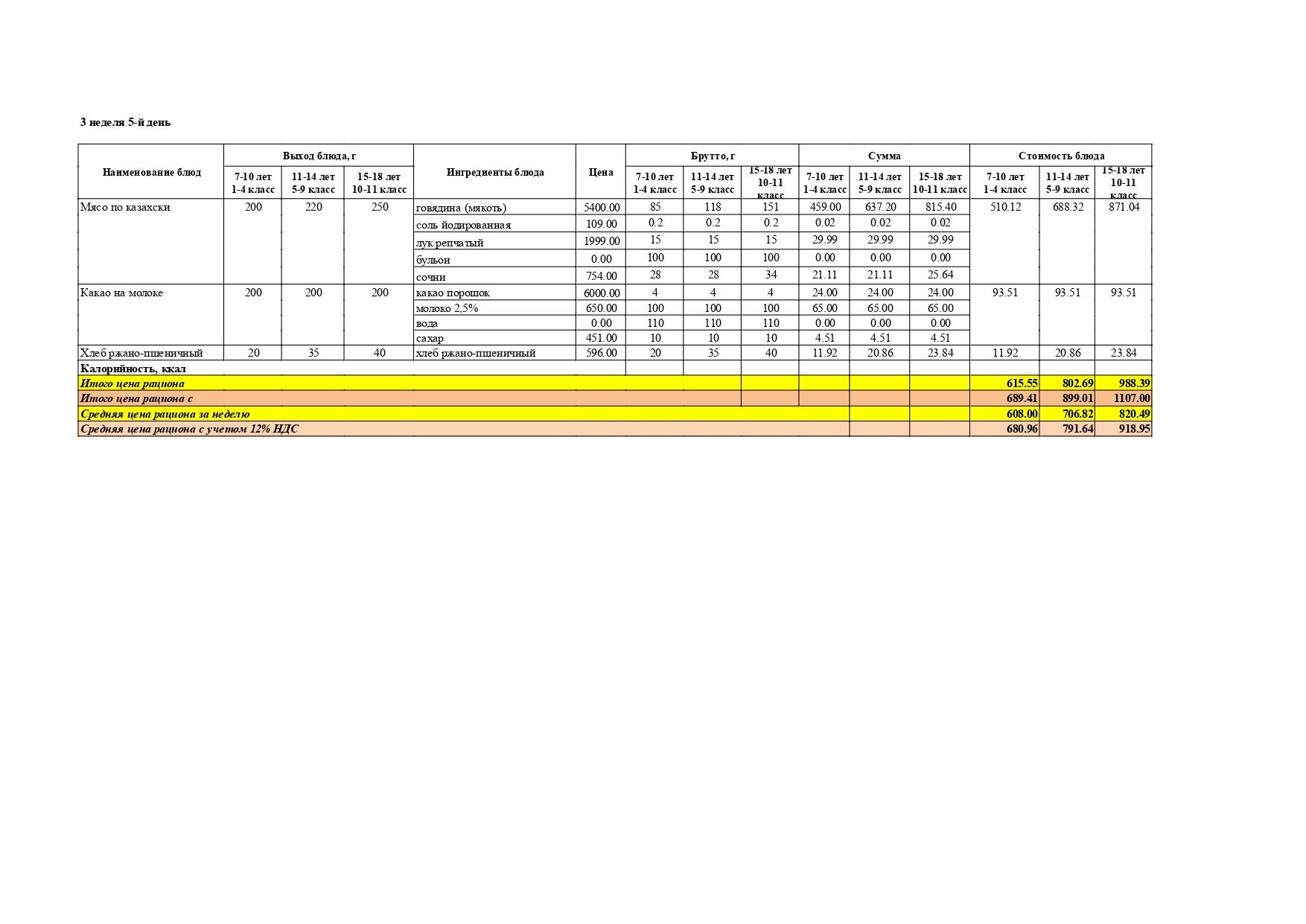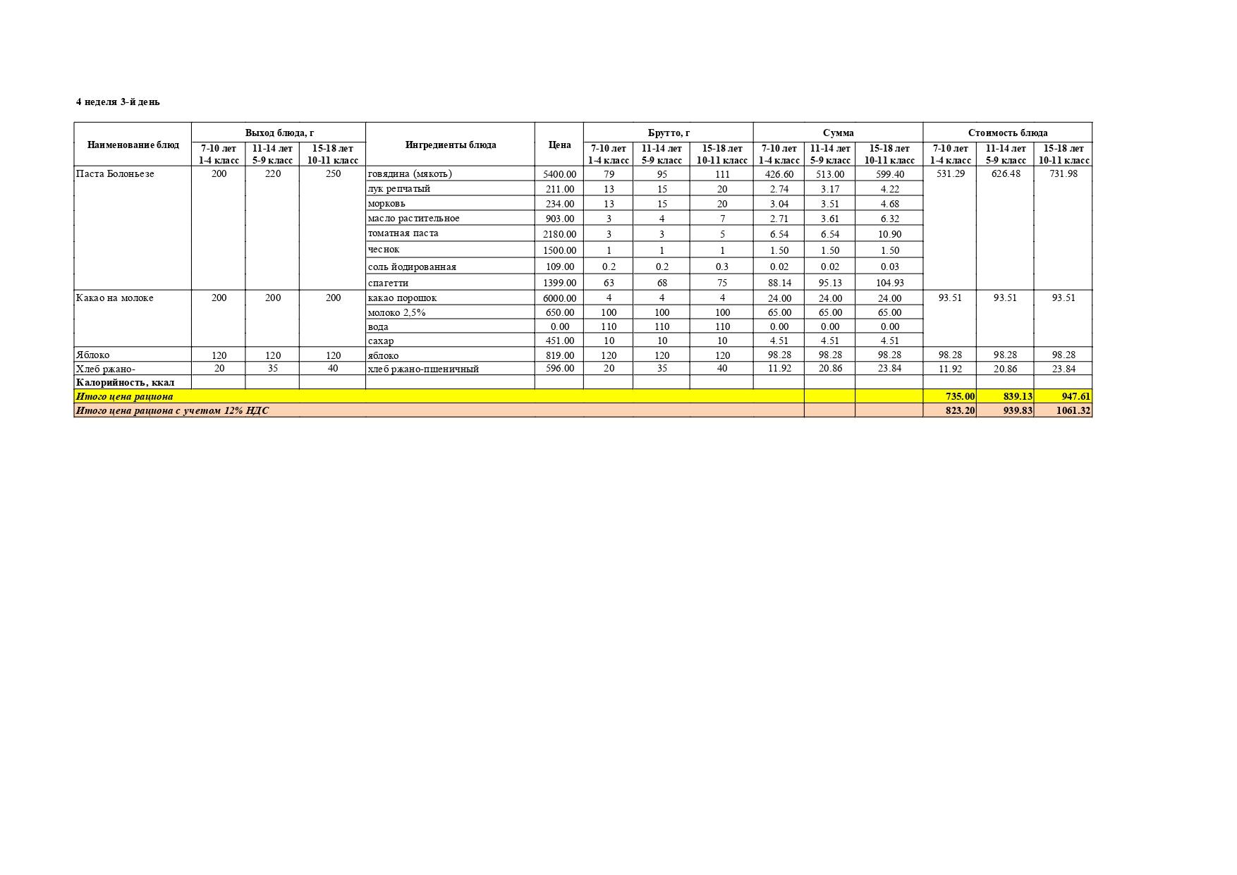 Перспективалы 4 апталық мәзір / Перспективное 4-х недельное меню