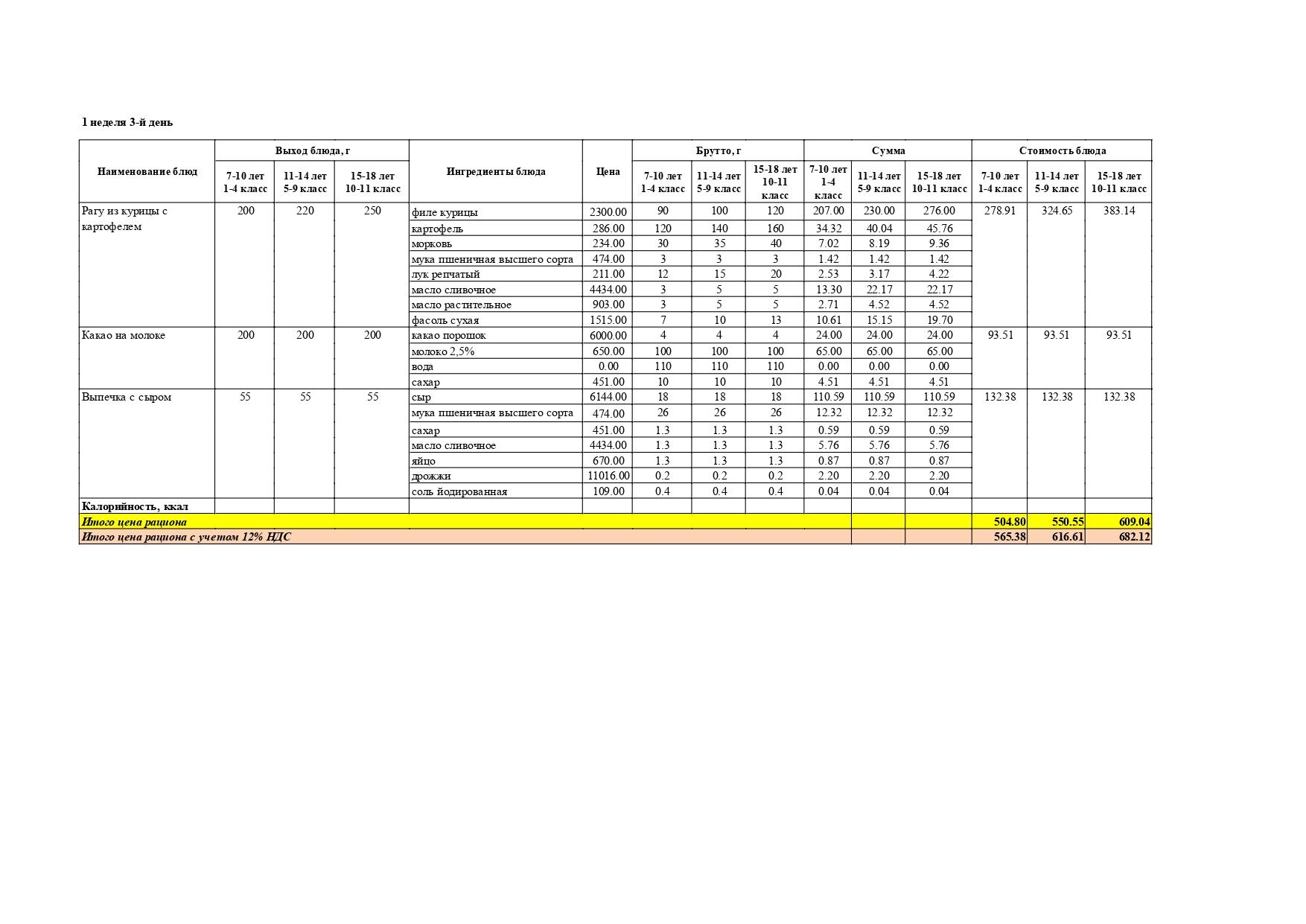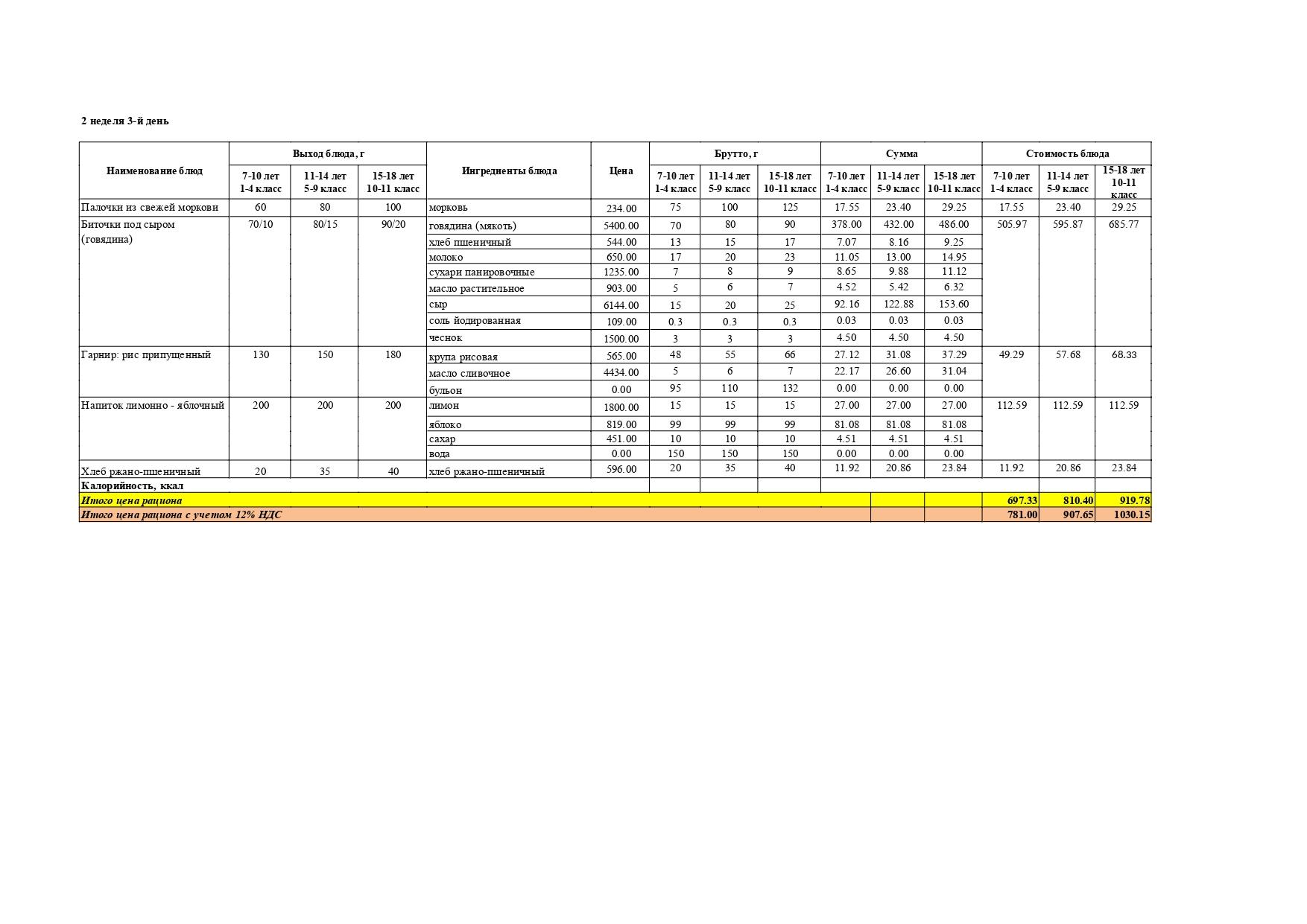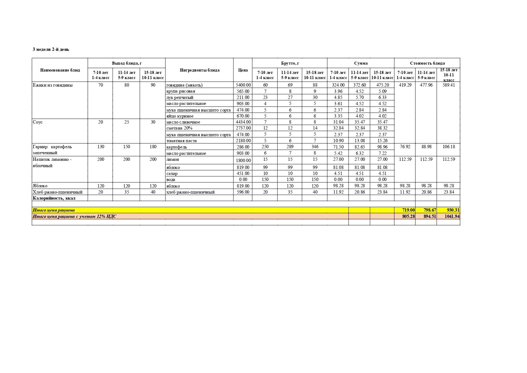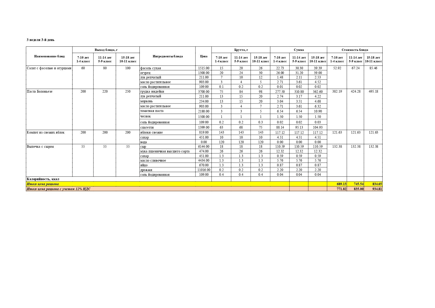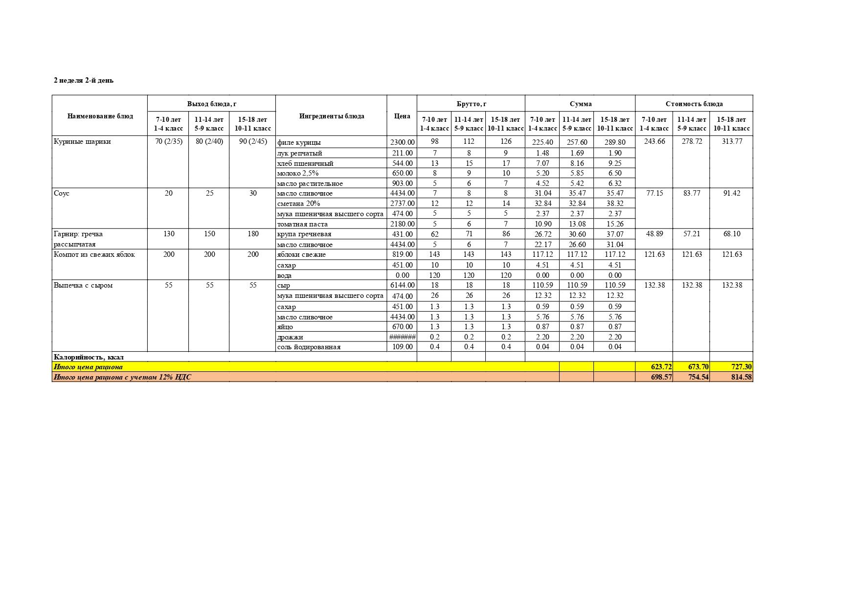 Перспективалы 4 апталық мәзір / Перспективное 4-х недельное меню